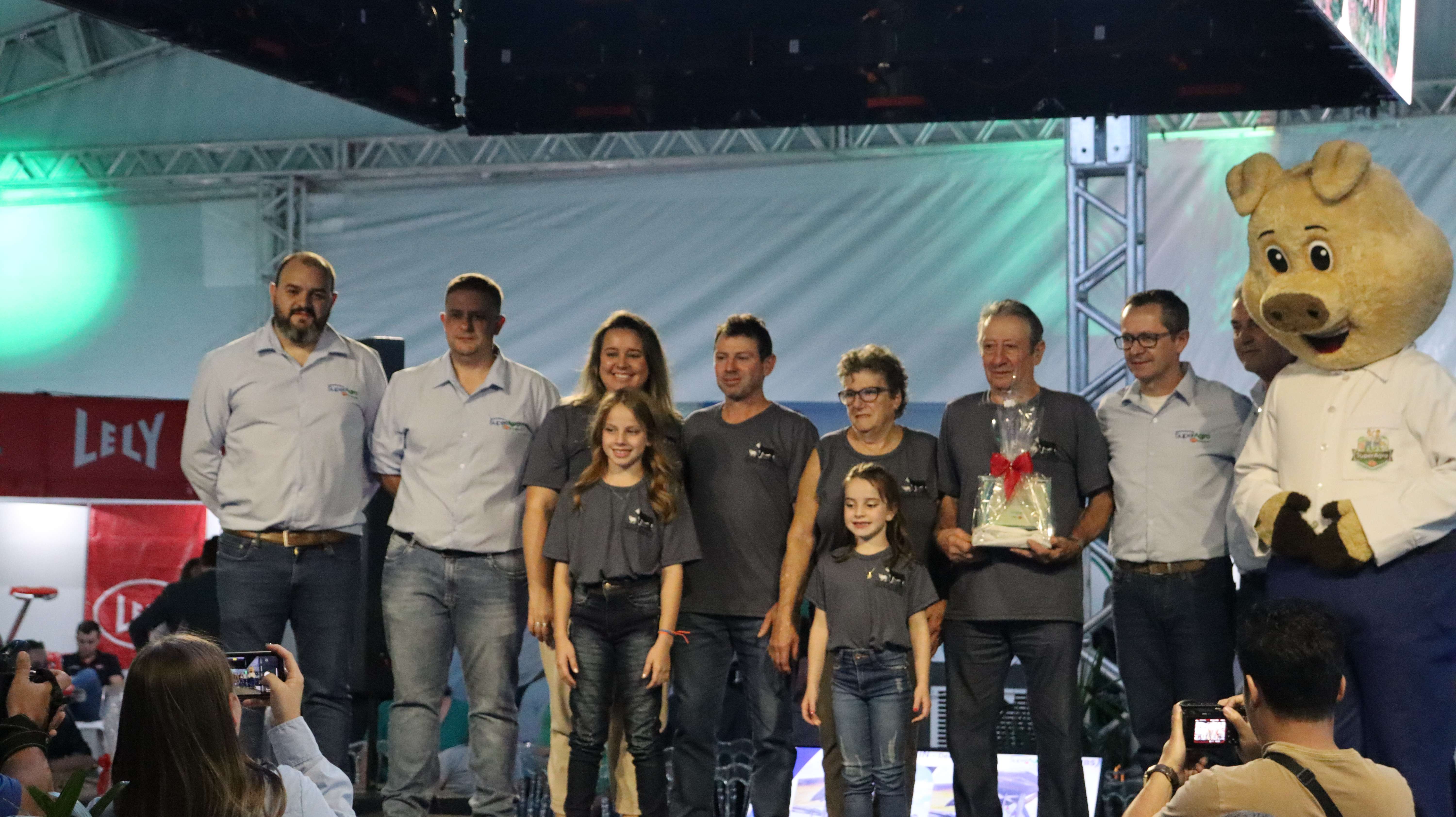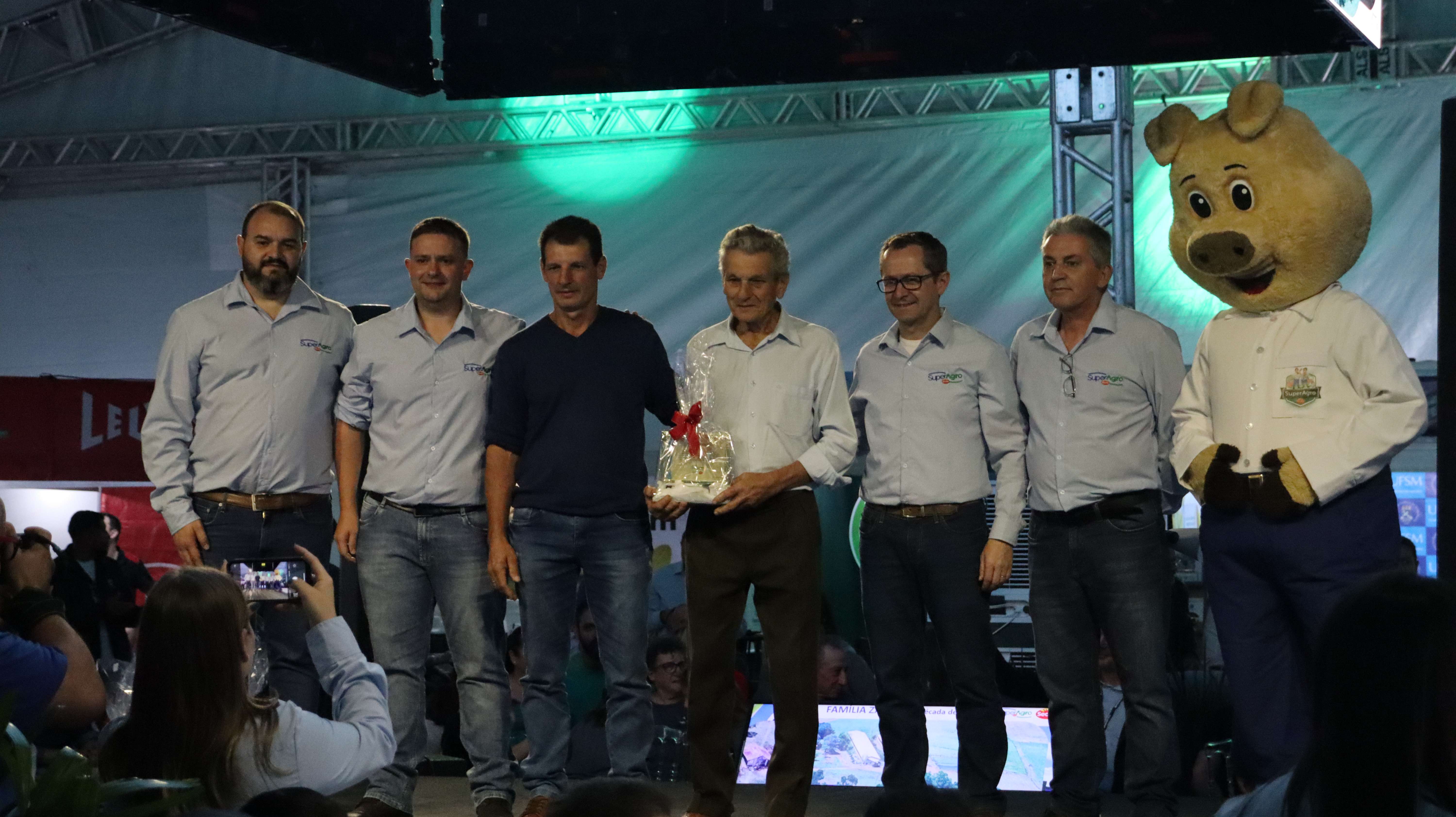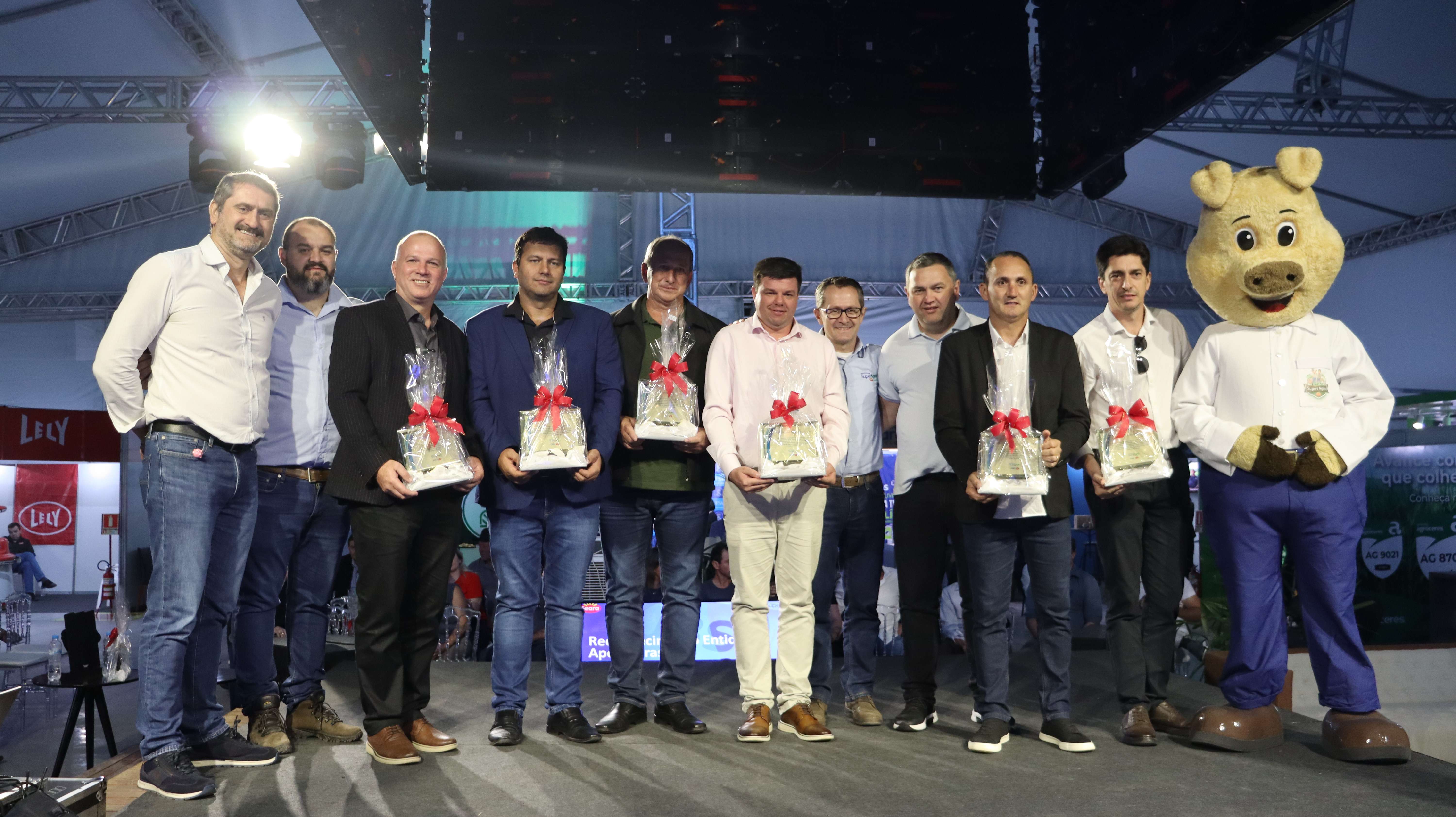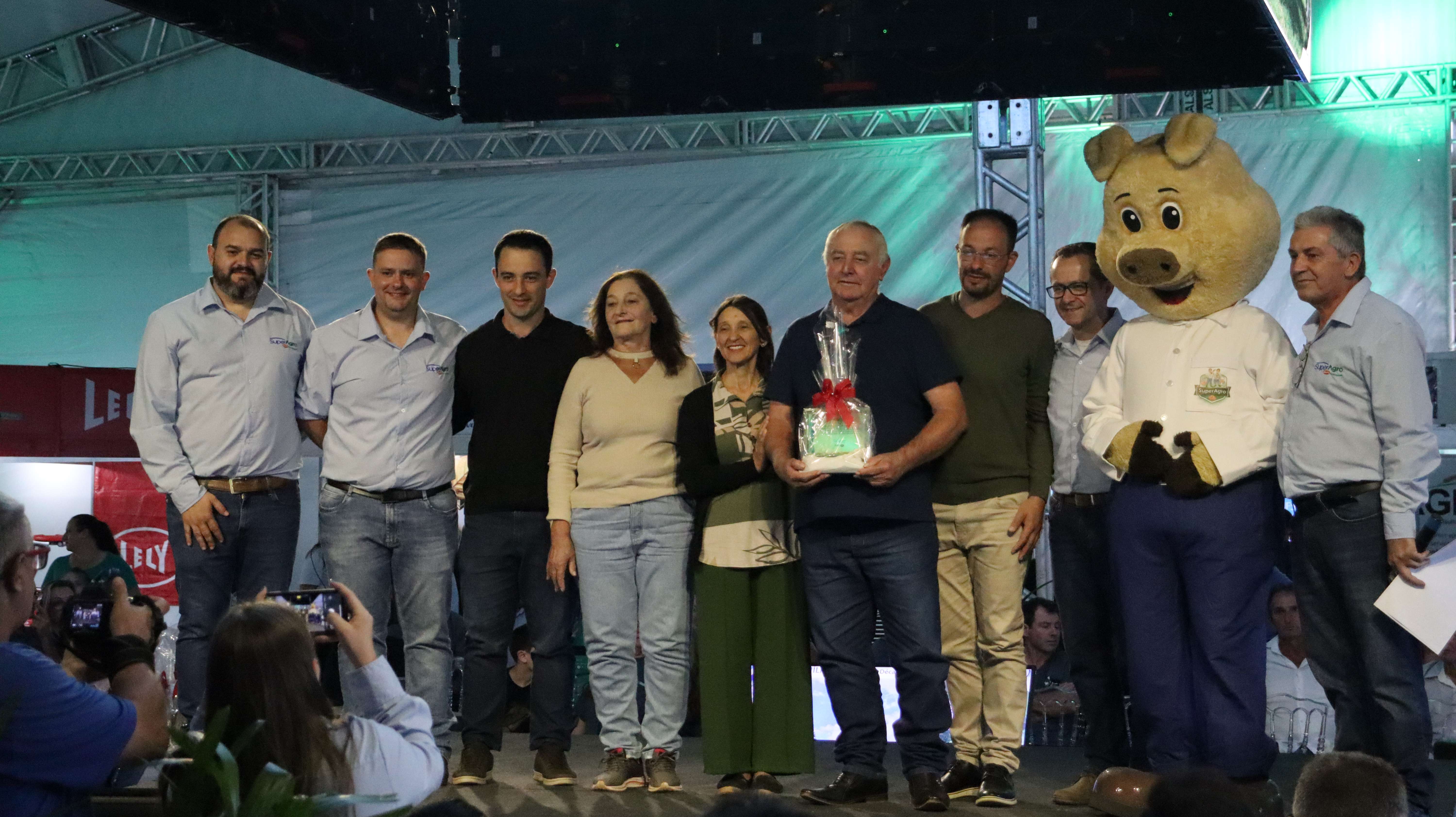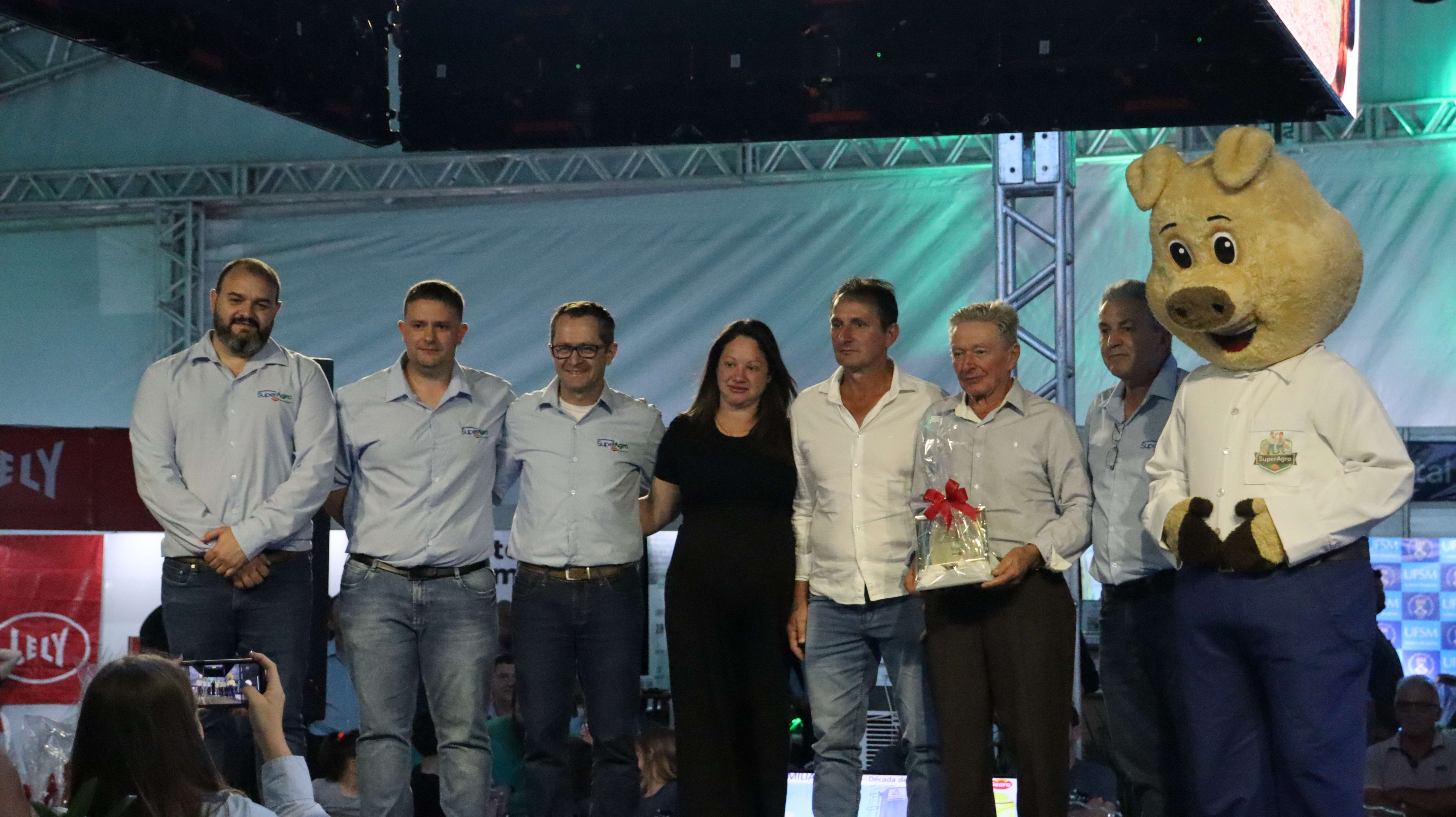 Um dos destaques da cerimônia foi a premiação de reconhecimento realizada pela JBS, que homenageou produtores rurais e os municípios com maior produção de suínos na região no ano de 2024.