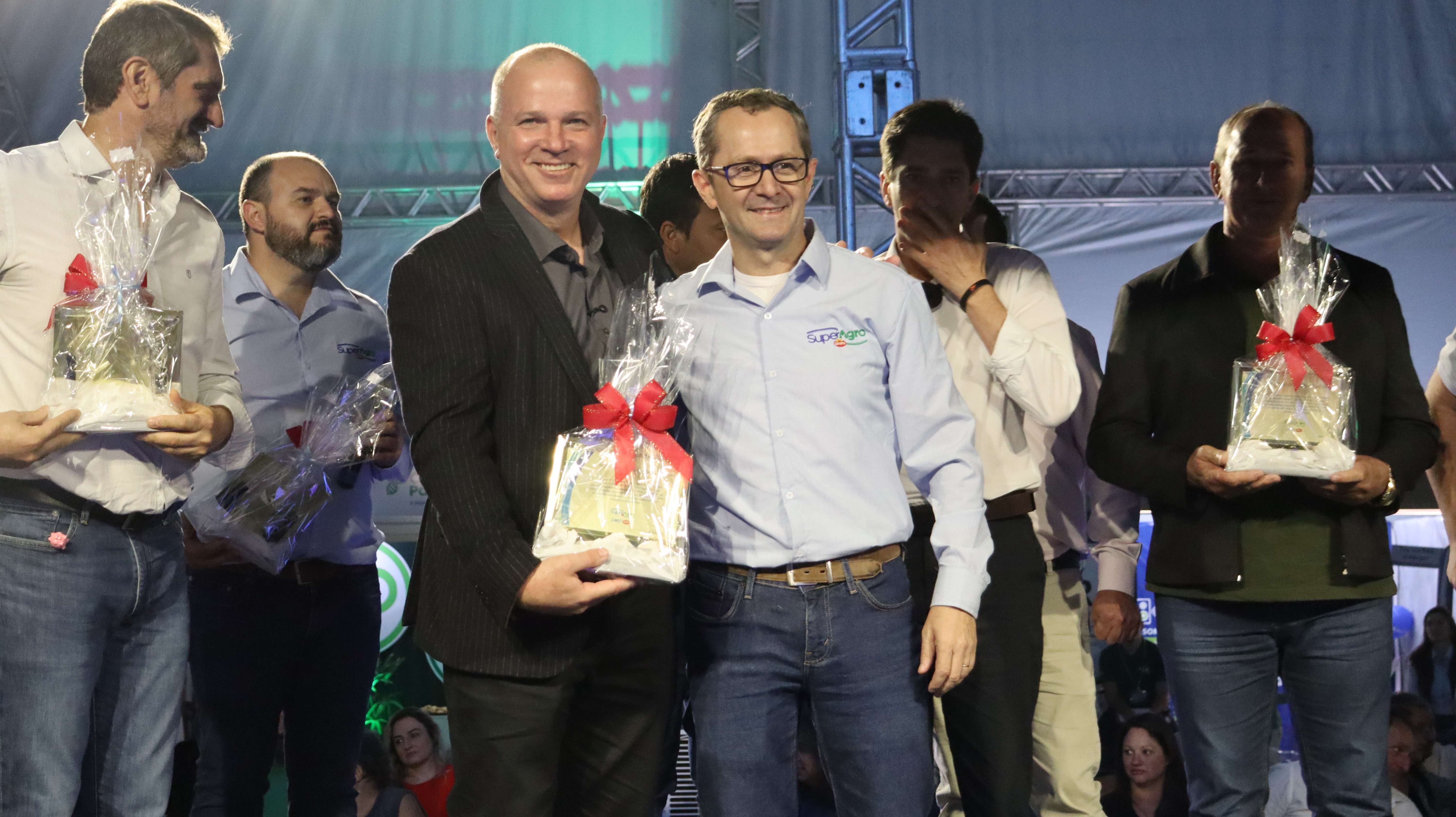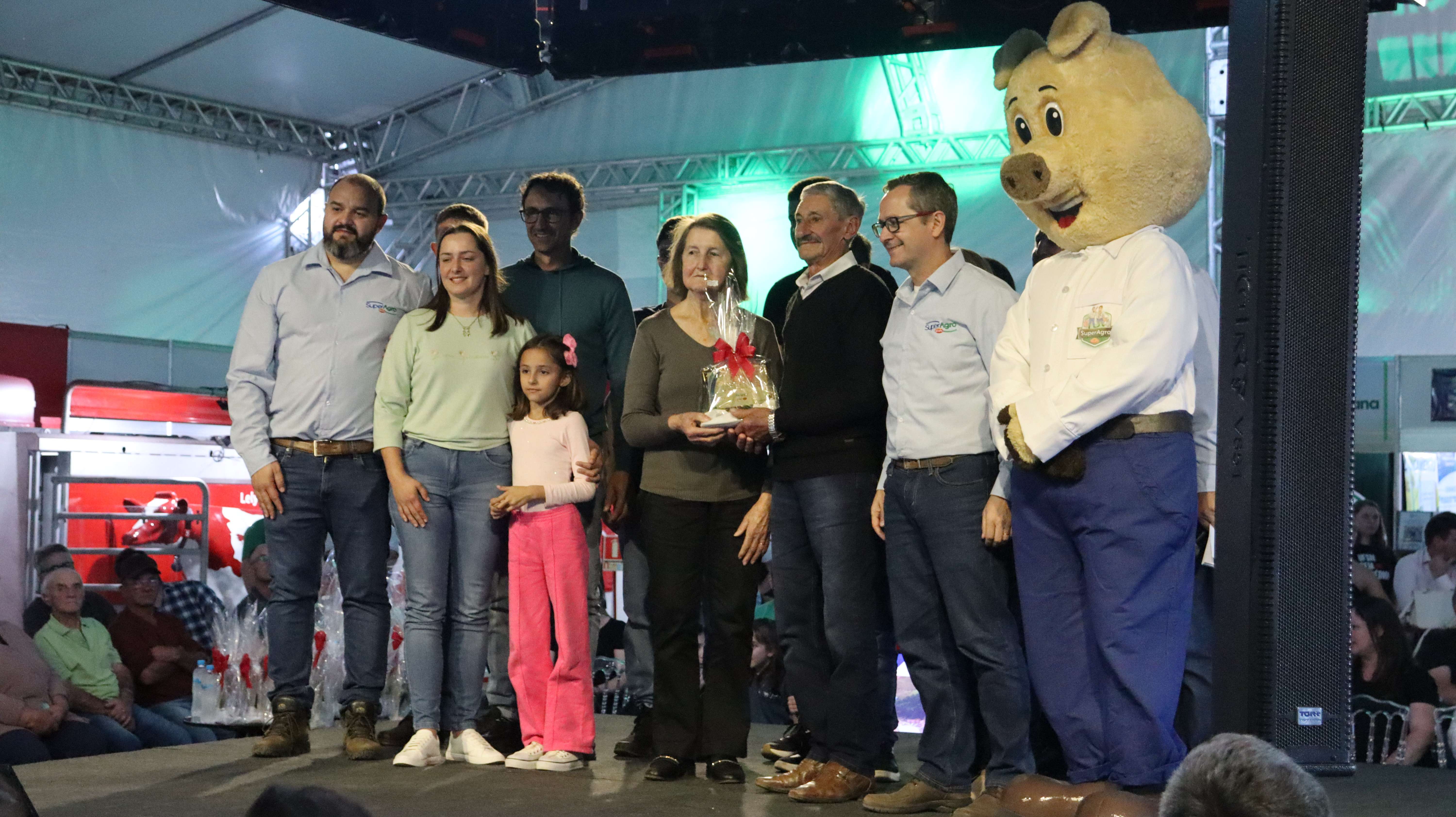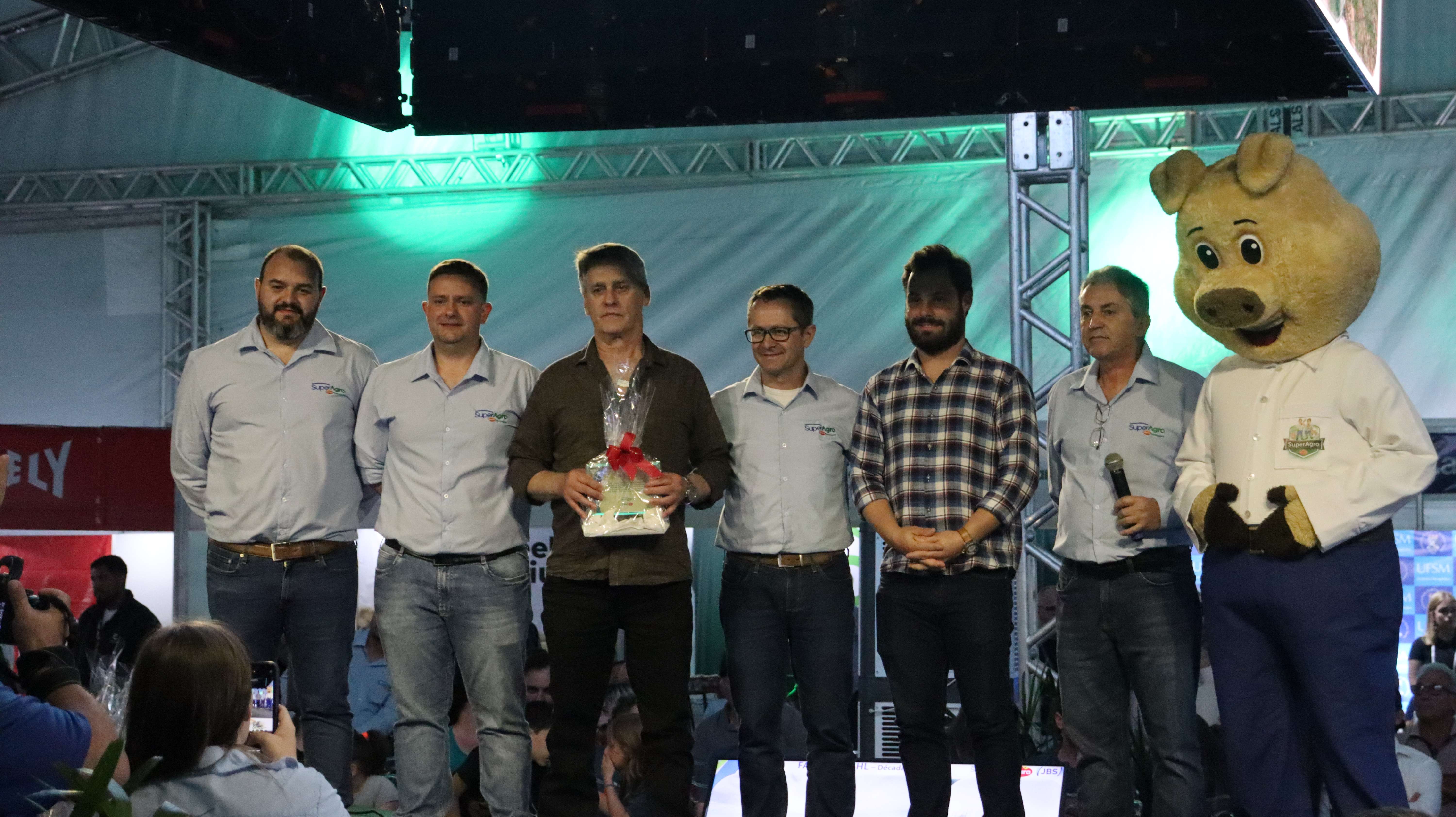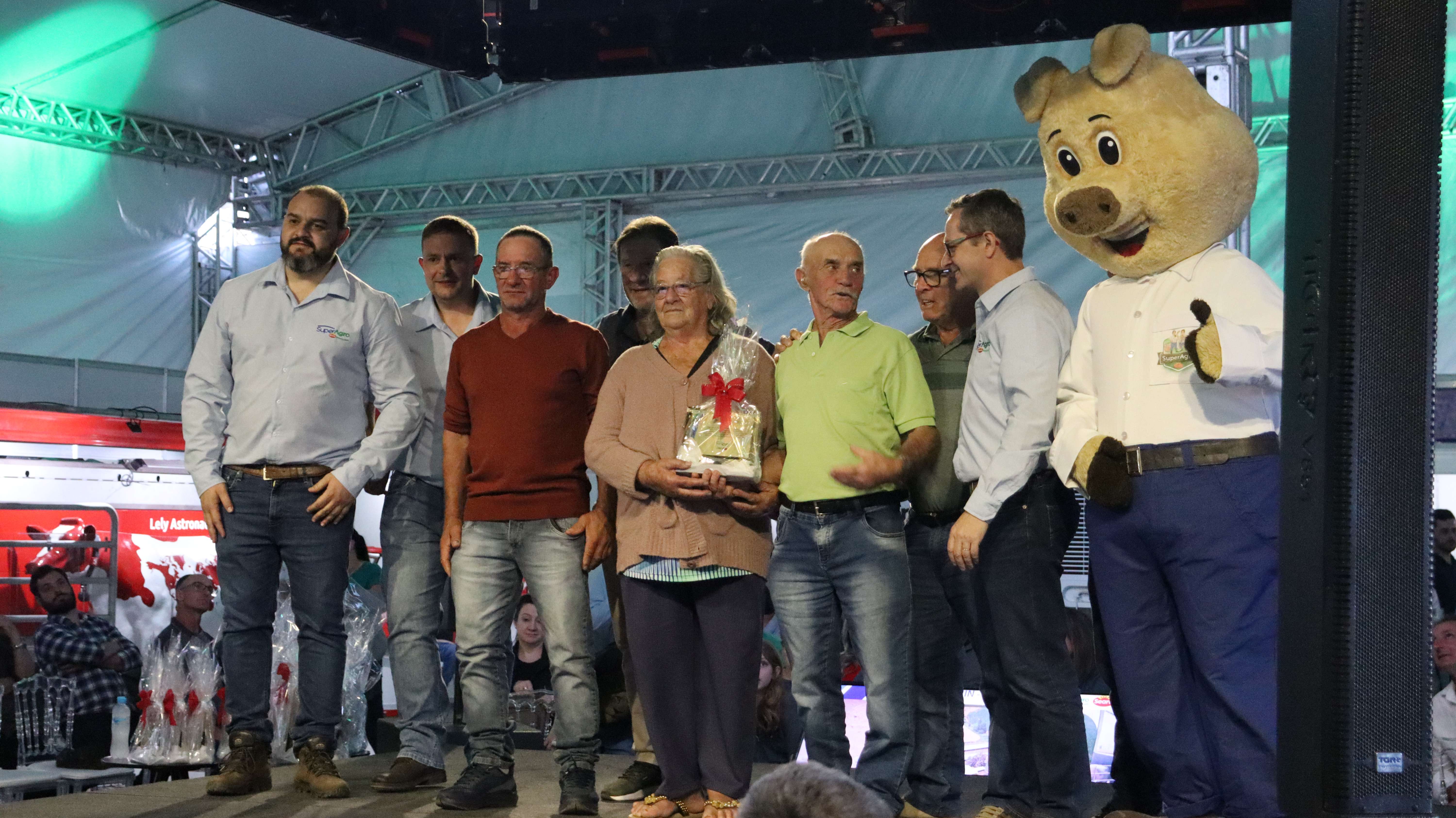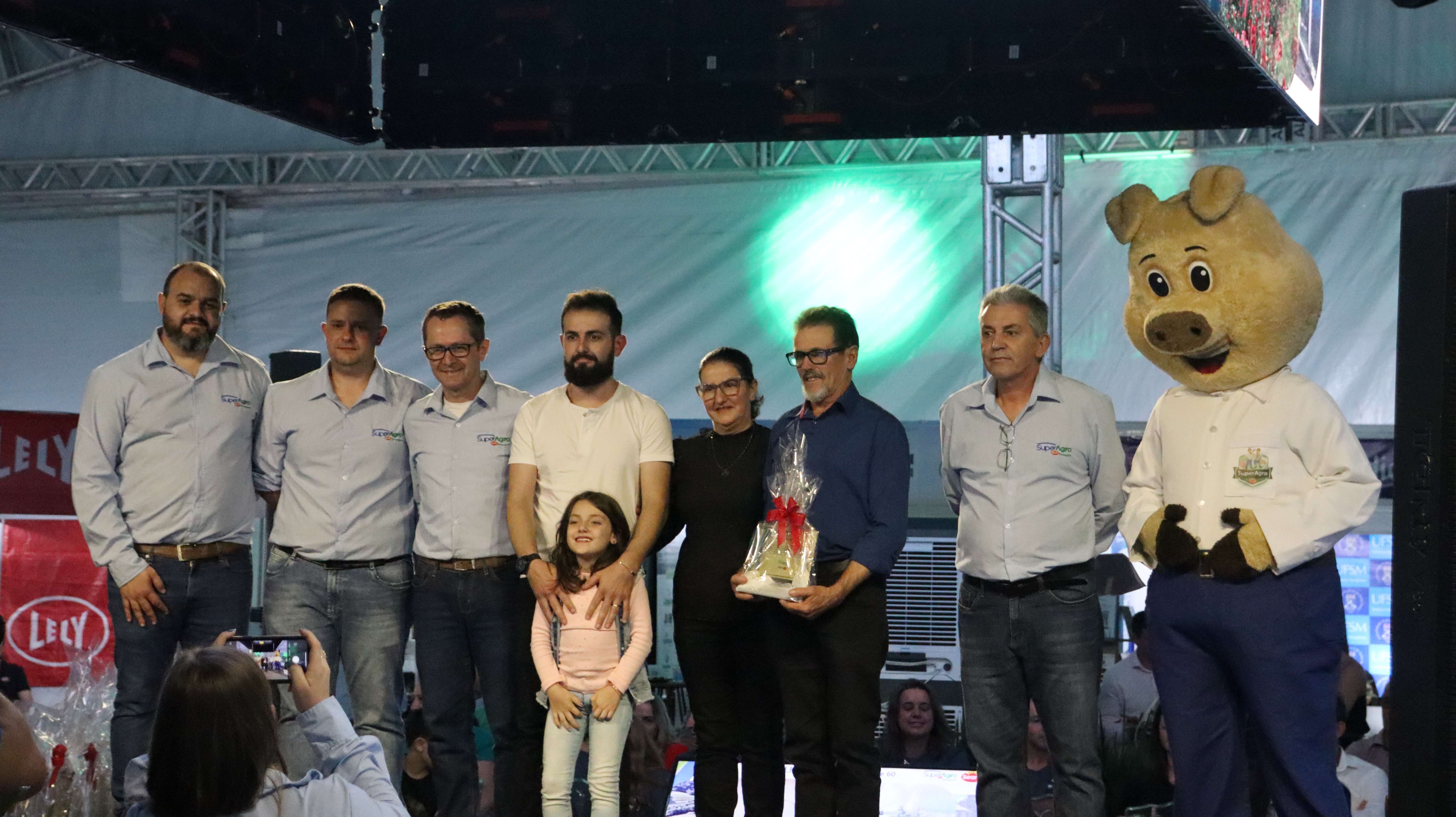 Um dos destaques da cerimônia foi a premiação de reconhecimento realizada pela JBS, que homenageou produtores rurais e os municípios com maior produção de suínos na região no ano de 2024.