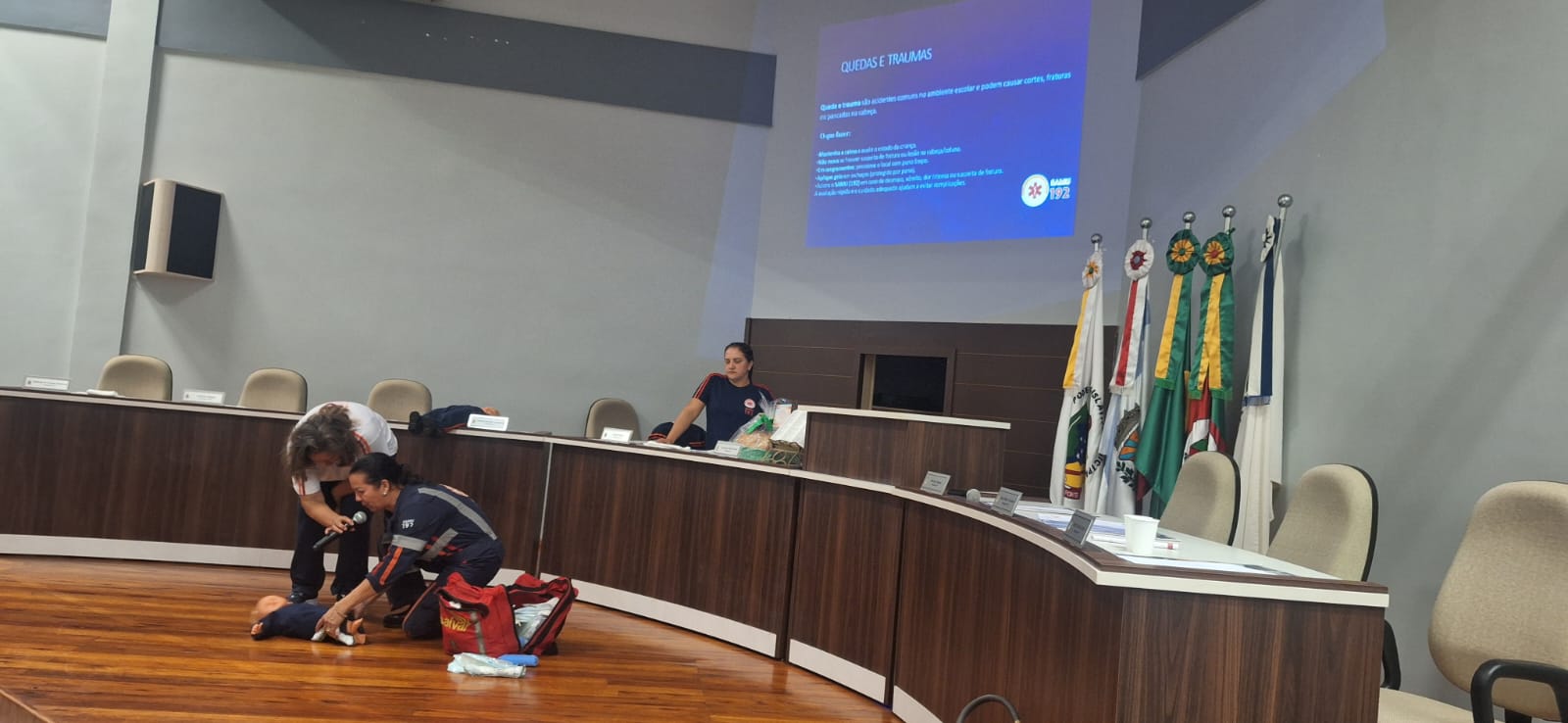 A capacitação teve como objetivo preparar professores, monitores e demais servidores da educação para agir de forma rápida e segura em situações de emergência no ambiente escolar. Durante o encontro, os participantes receberam orientações teóricas e práticas sobre procedimentos essenciais de primeiros socorros, como atendimento em casos de engasgo, parada cardiorrespiratória, desmaios, quedas, convulsões e outras ocorrências que podem acontecer no cotidiano escolar.