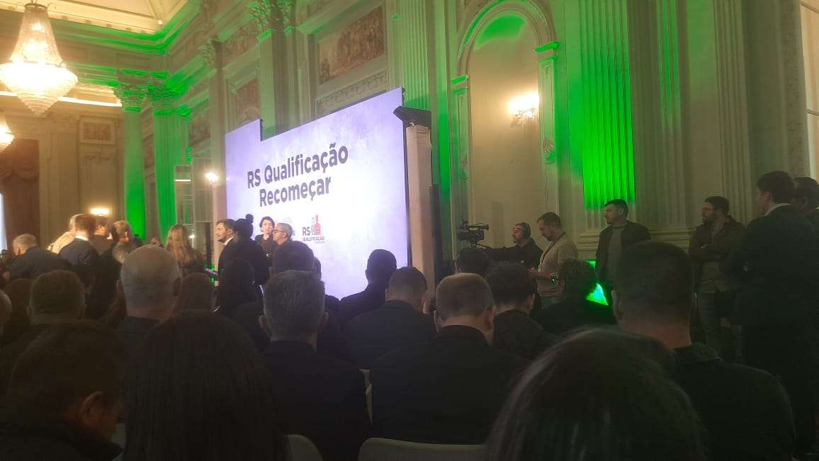 Já no dia 18, Gélcio participou do lançamento do programa RS Qualificação Recomeçar, promovido pela Secretaria Estadual de Trabalho e Desenvolvimento Profissional, sob coordenação do Secretário Gilmar Sossella. O evento reuniu diversas lideranças estaduais e representou uma oportunidade para estreitar laços e prospectar novos convênios voltados à qualificação profissional.